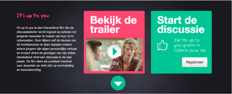 It's up to you is een interactieve film die als interventie tegen cyberpesten wordt ingezet op scholen.